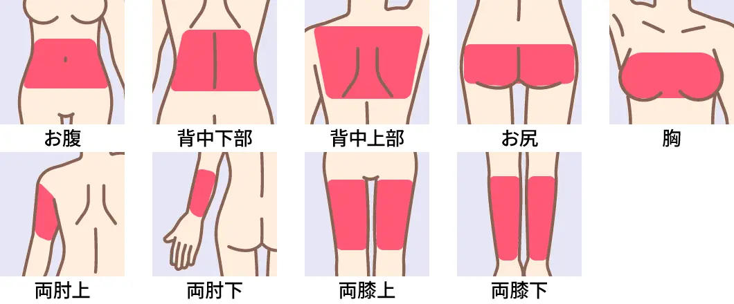 ※Lグループ:お腹・背中下部・背中上部・お尻・胸・両肘上・両肘下・両膝上・両膝下